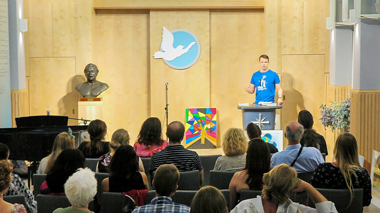 続いて、Scientology教会コペンハーゲンのアート・ナイトが行われ、芸術を通じて回復を高めるというメッセージが伝えられました。 インビクタスの詩の朗読は聴衆に、他の詩では及ばないような、回復の精神を伝えました。 ウィリアム・アーネスト・ヘンリーによって書かれたこの詩は、ロベン島にいる間、マンデラによって自分自身に、そして仲間の受刑者たちに読まれたことで有名です。 最後の言葉はこうです。『私は自らの運命の師であり、私は自らの魂の指揮官なのだ。』 次は、YHRIキャンペーンの紹介です。マンデラのモザイク画のプレゼンテーション、ミュージシャンによる演奏、写真家、ギター・プレーヤーなど、あらゆる種類のアーティストによるパフォーマンスが行われました。