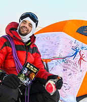 ナルディは、人権を支援する学校の子供たちが署名した特別な旗、「人権の旗」を持って、世界で最も高い山に数多くの遠征を実行しました。